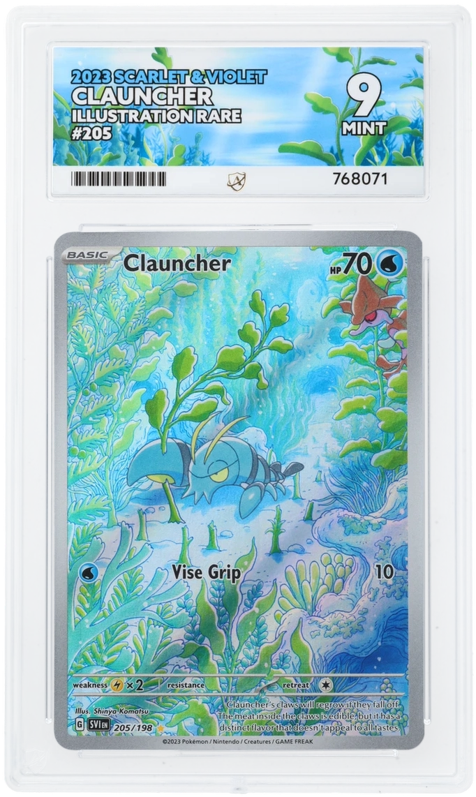 ClauncherSet: Scarlet & VioletYear: 2023Card Number: 205/198Language: EnglishVariant: Illustration RareGrade: 9 Grade Name: MINTCertification Number: #768071Graded by: Ace GradingSurfaces: 9Corners:... Read more